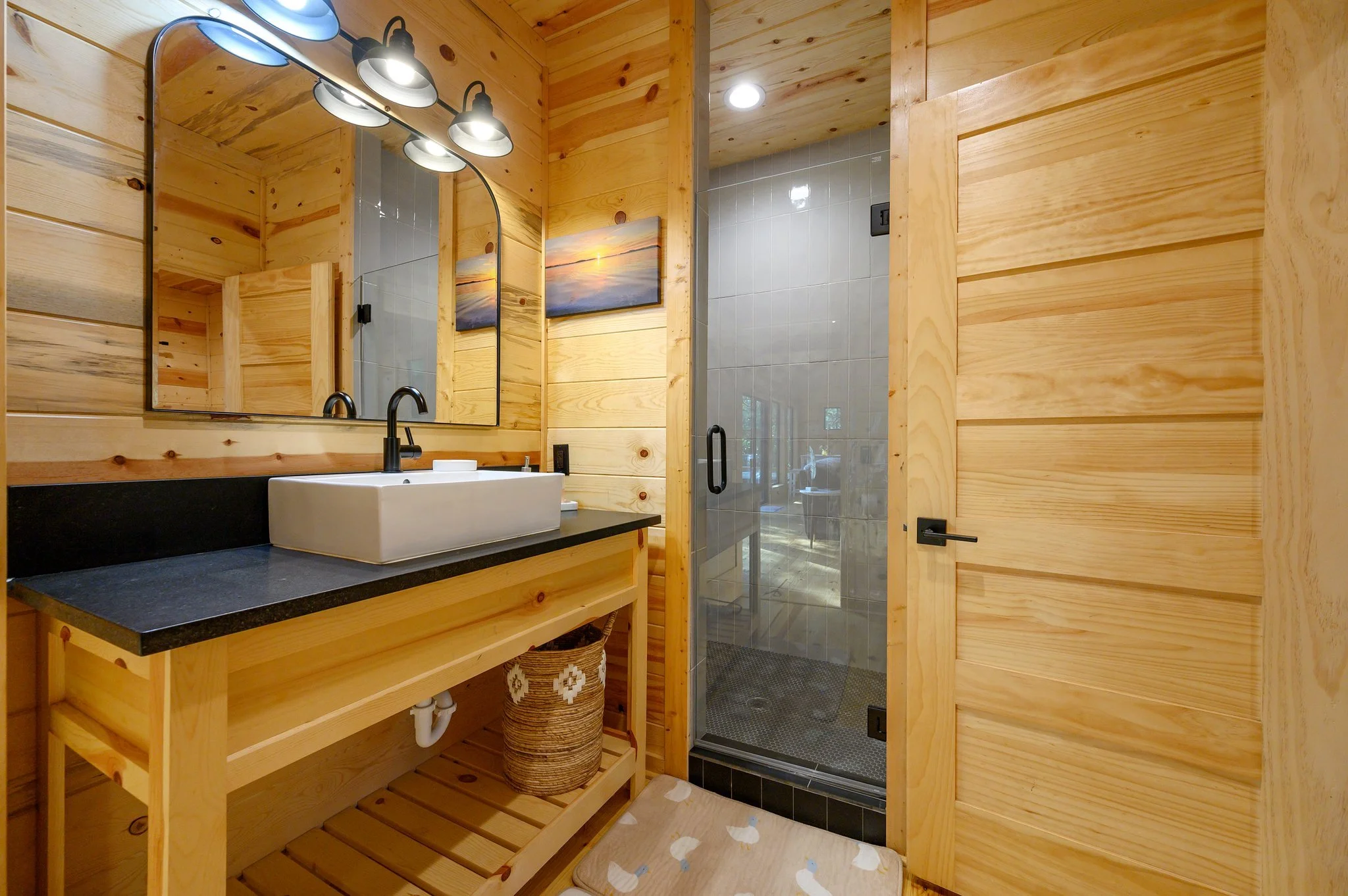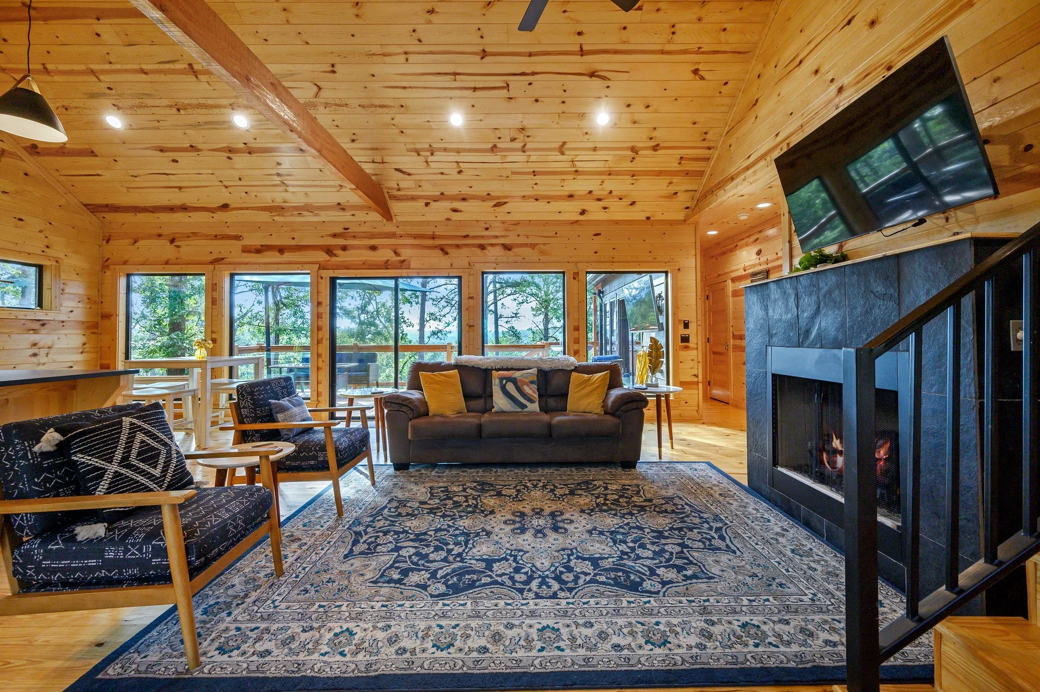 Outside is where the magic really happens! Stargaze from the cantilevered hammock (waiver required—adventure comes with responsibility!), melt into the private hot tub under the pines, or gather 'round the stunning stone fire pit with swings, hammocks, and Adirondack chairs just begging for marshmallow roasting and late-night laughs.