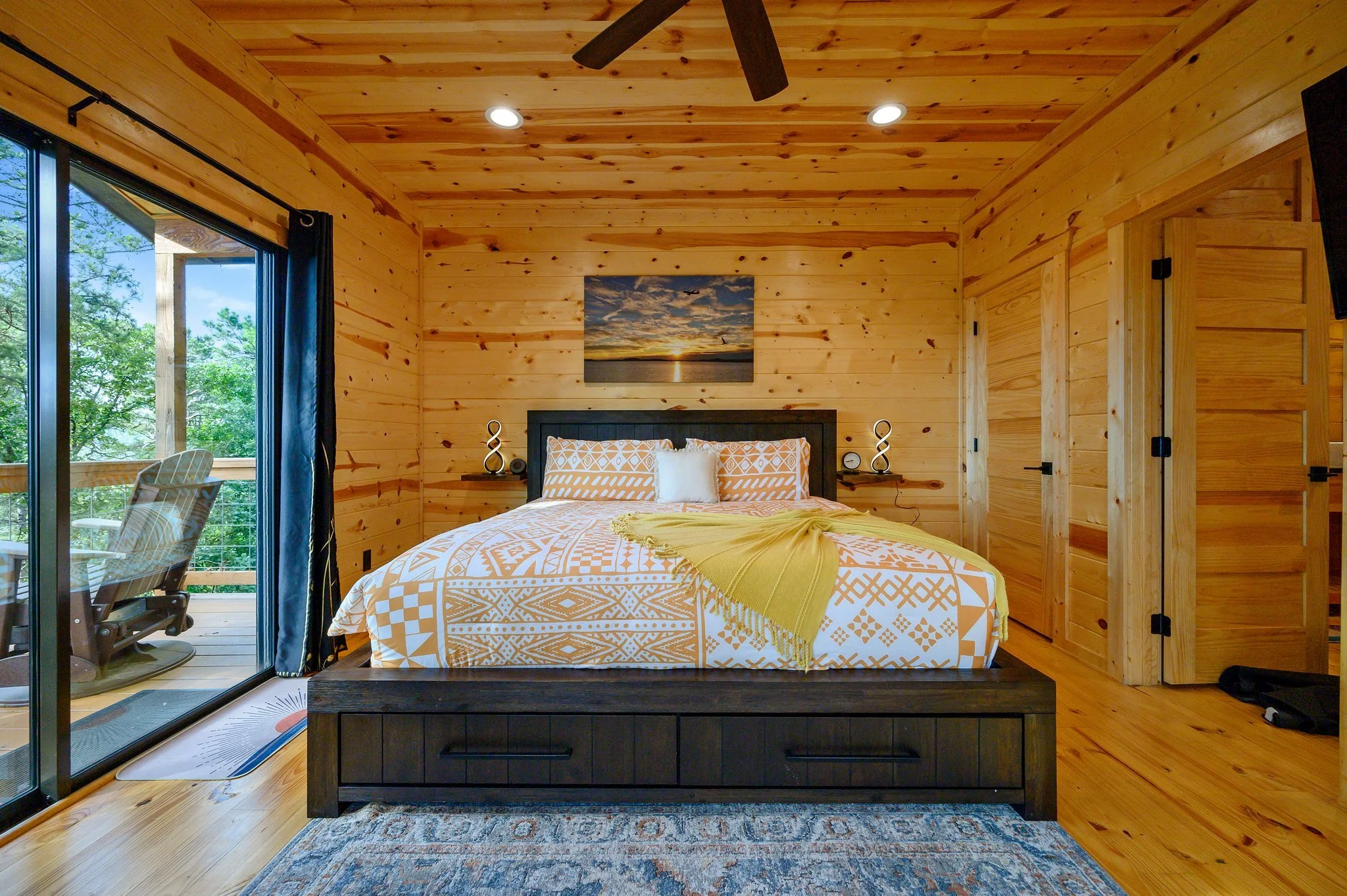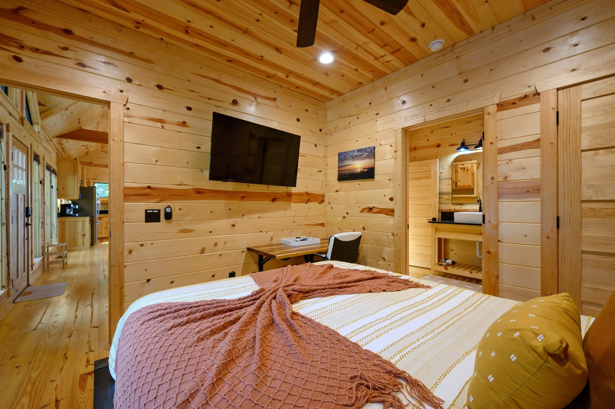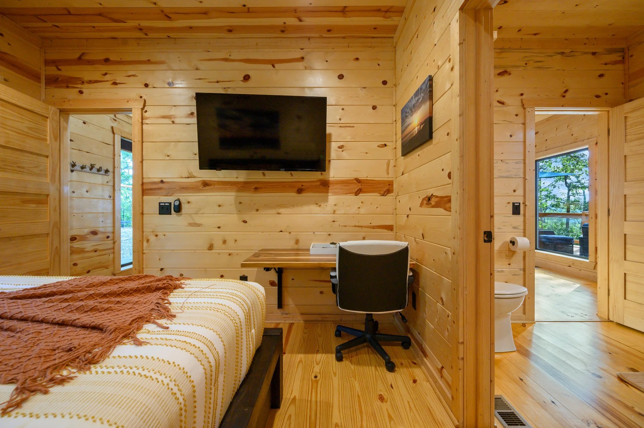 Step inside and let the views steal the show, with floor-to-ceiling windows framing rolling hills and towering pines from nearly every angle. The spacious master suite features a king-sized bed you won’t want to leave, a cozy workspace, and a luxe ensuite bathroom that’s perfect for unwinding. Step through the sliding doors onto your private deck and greet the morning with a coffee and a view.